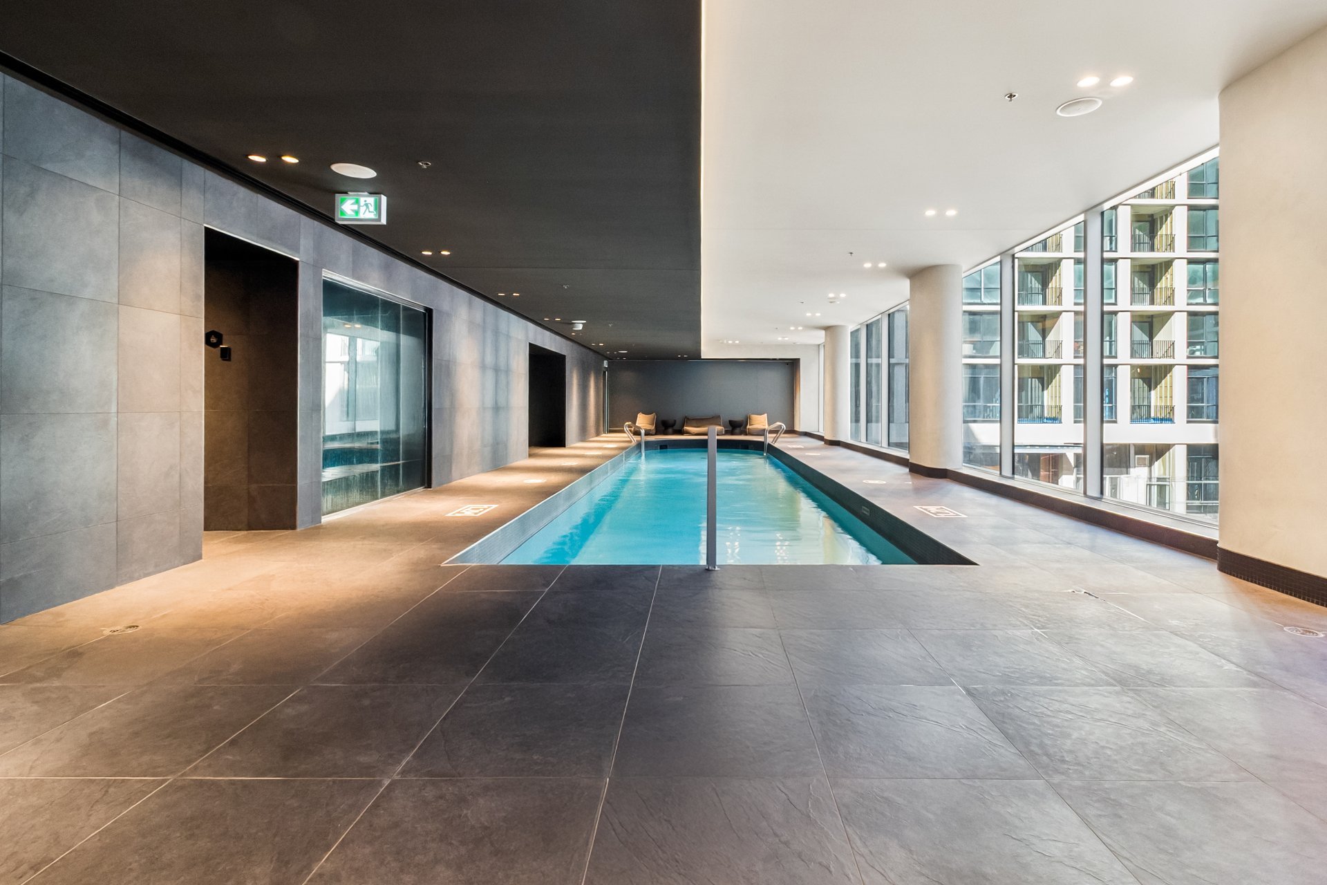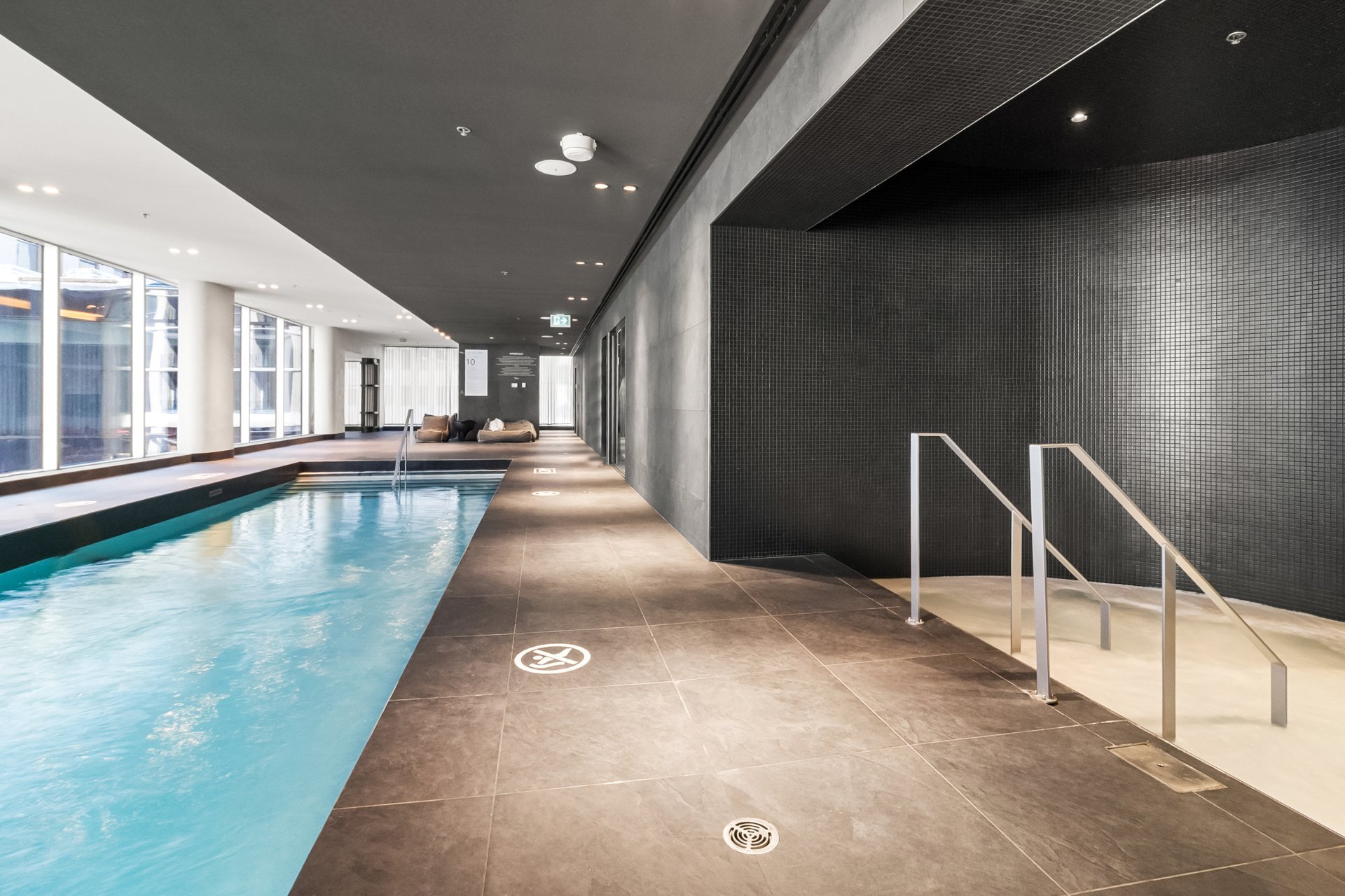 range of high-end amenities: indoor pool, sauna, fully