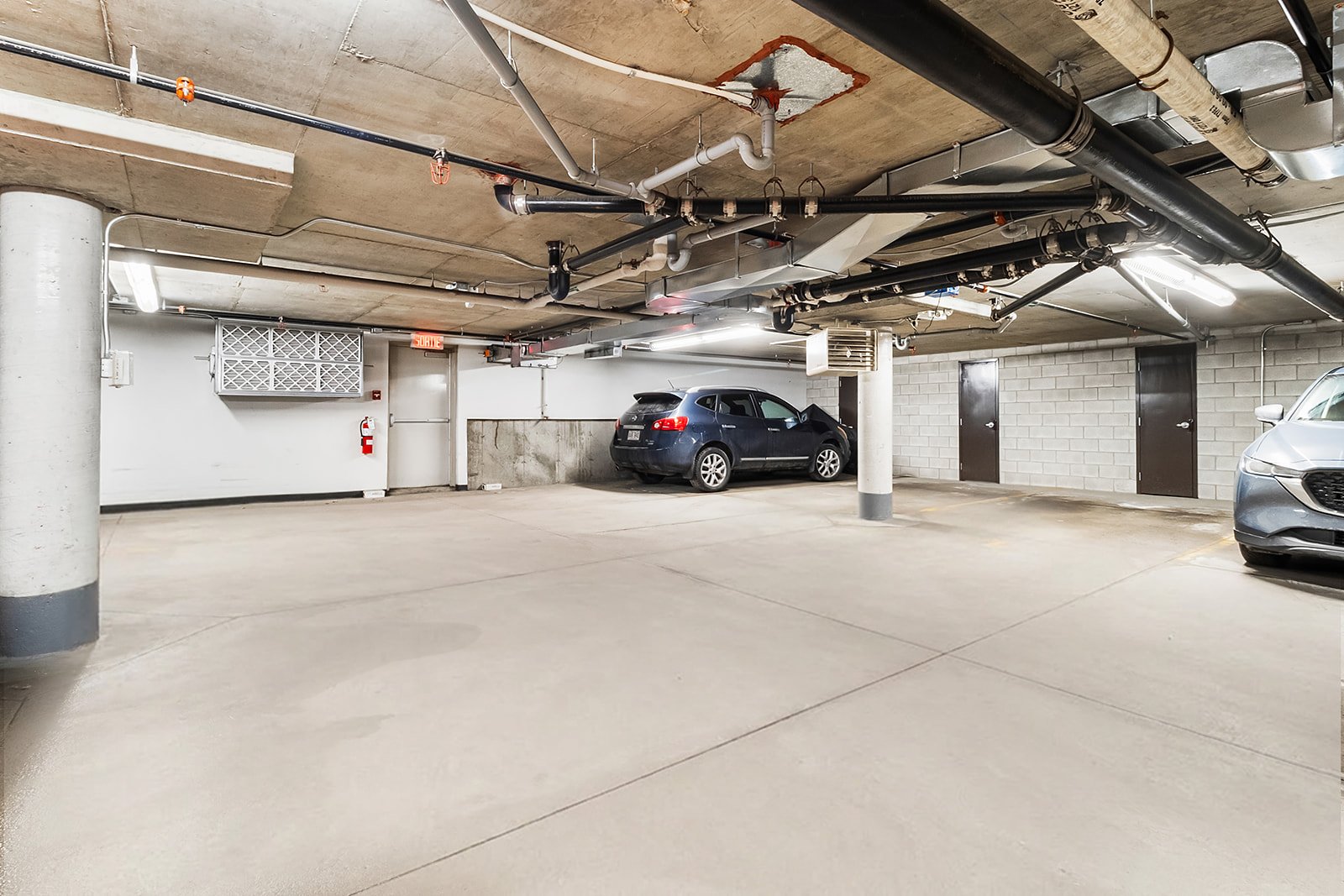 An indoor parking space and a storage locker are included,