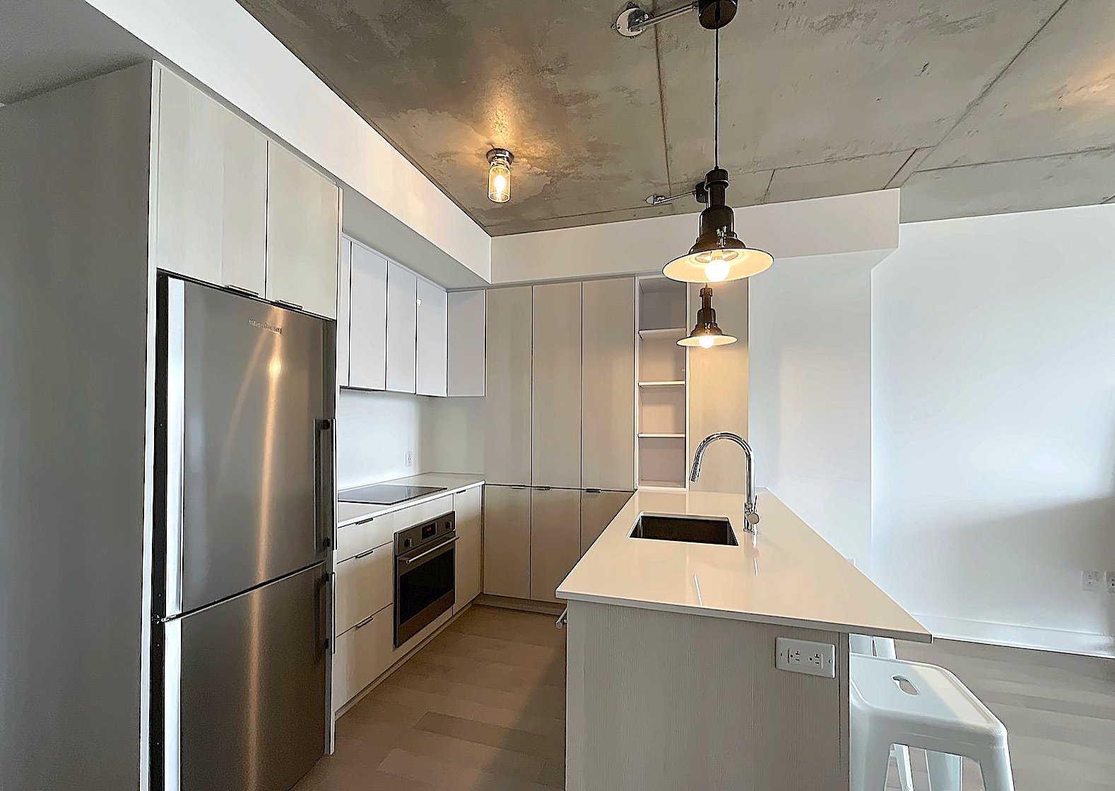 Modern kitchen with quartz countertops and included