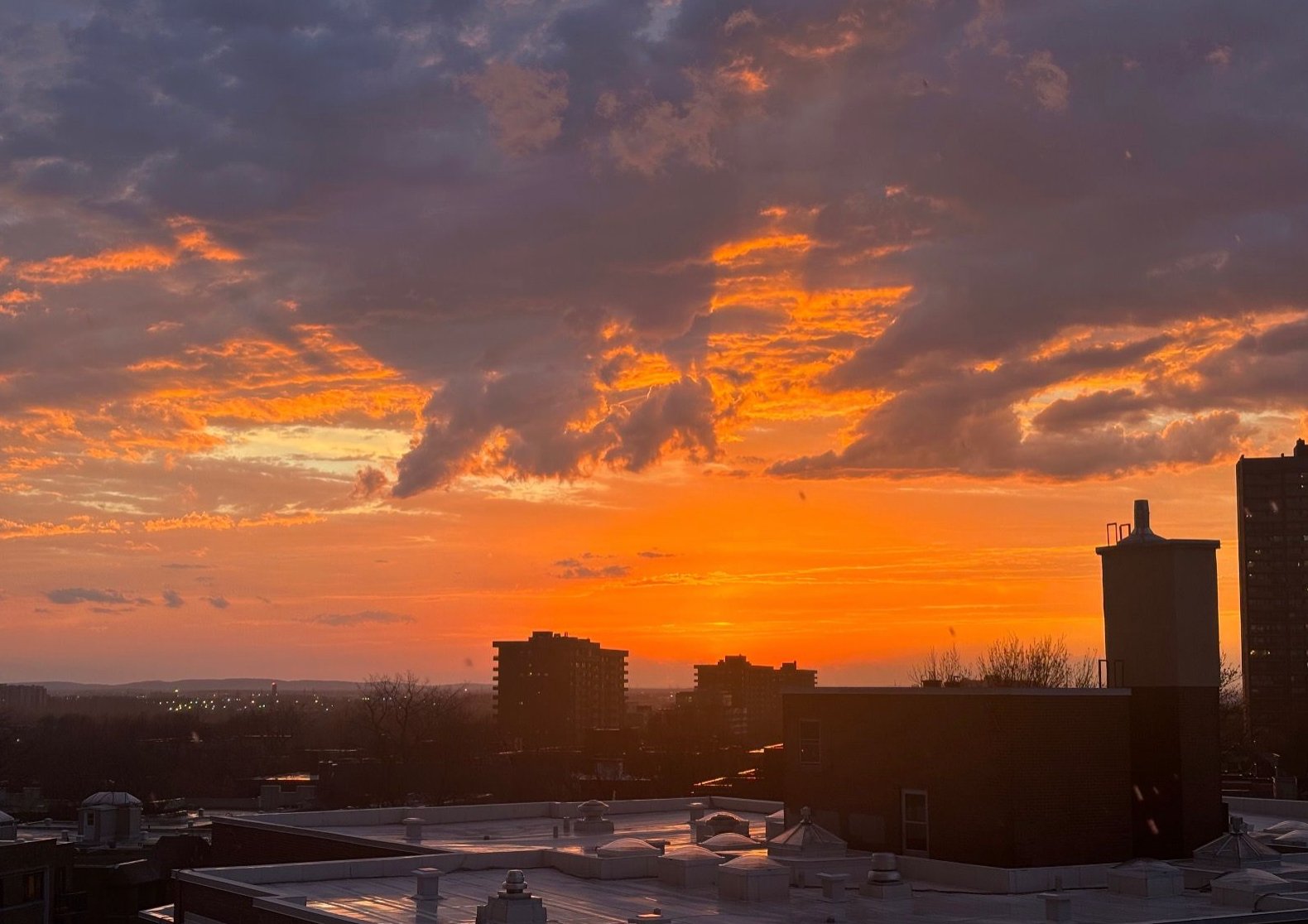 Heated rooftop pool with terrace and outdoor fireplace