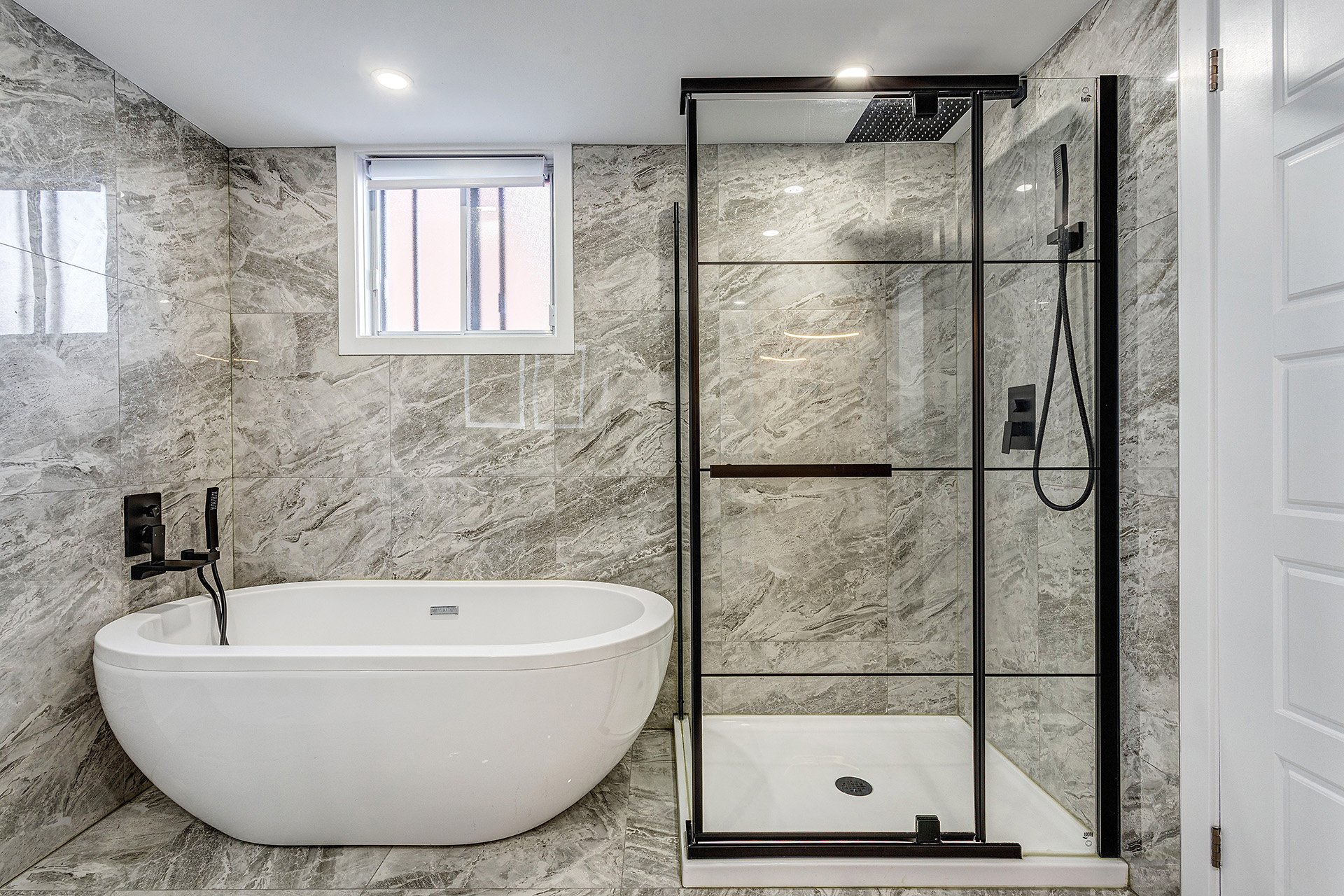 bathroom featuring both a bathtub and a separate shower.